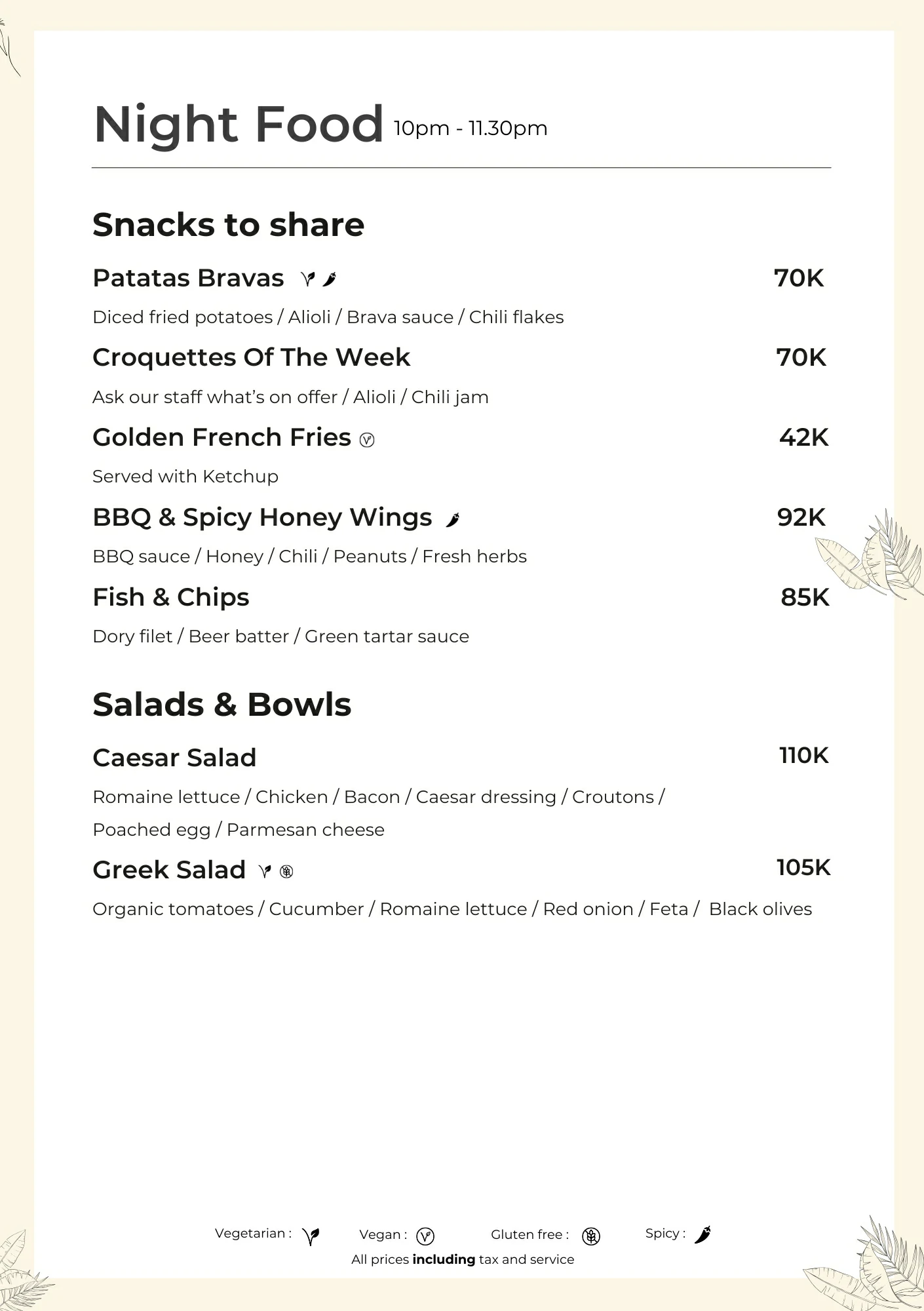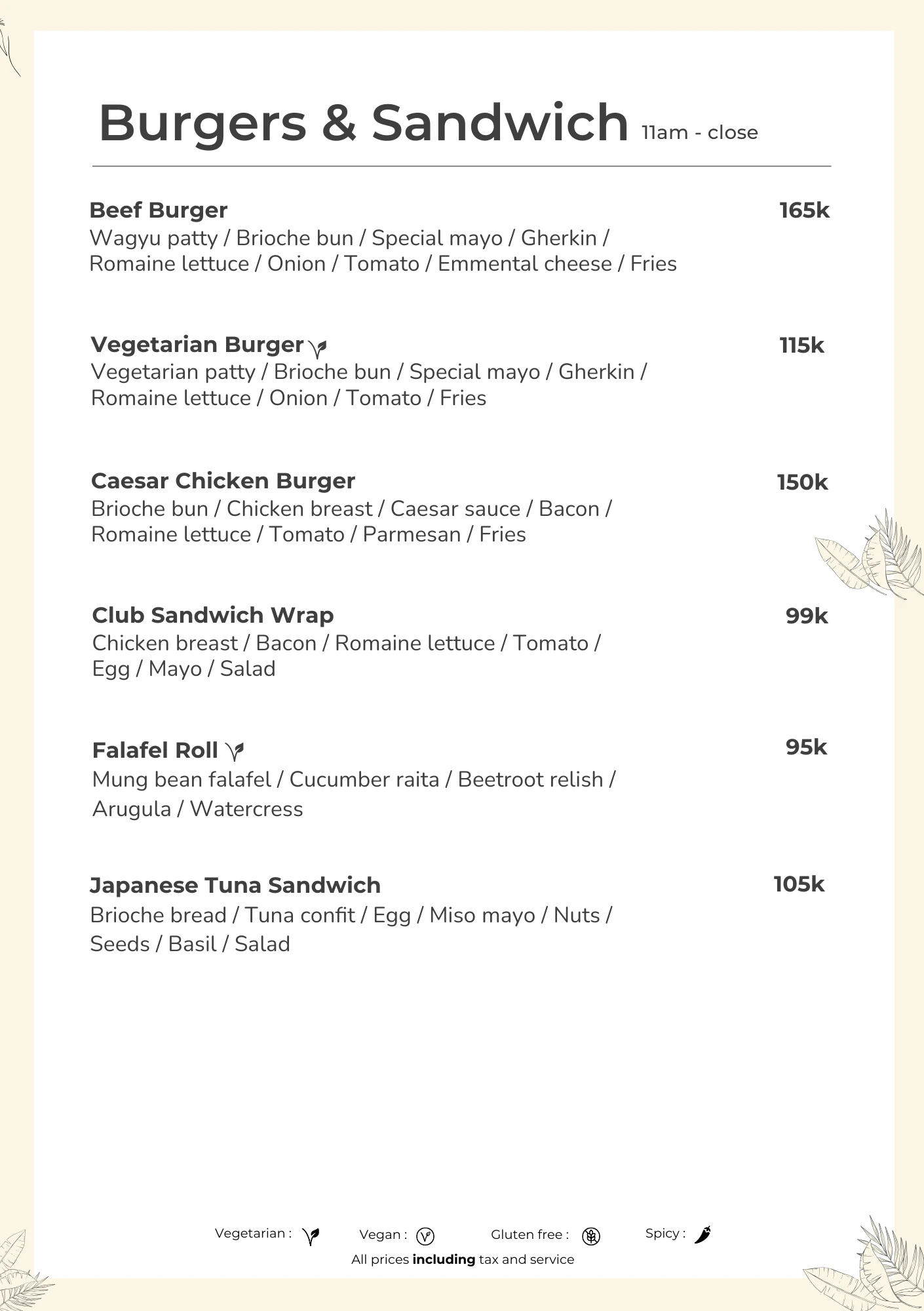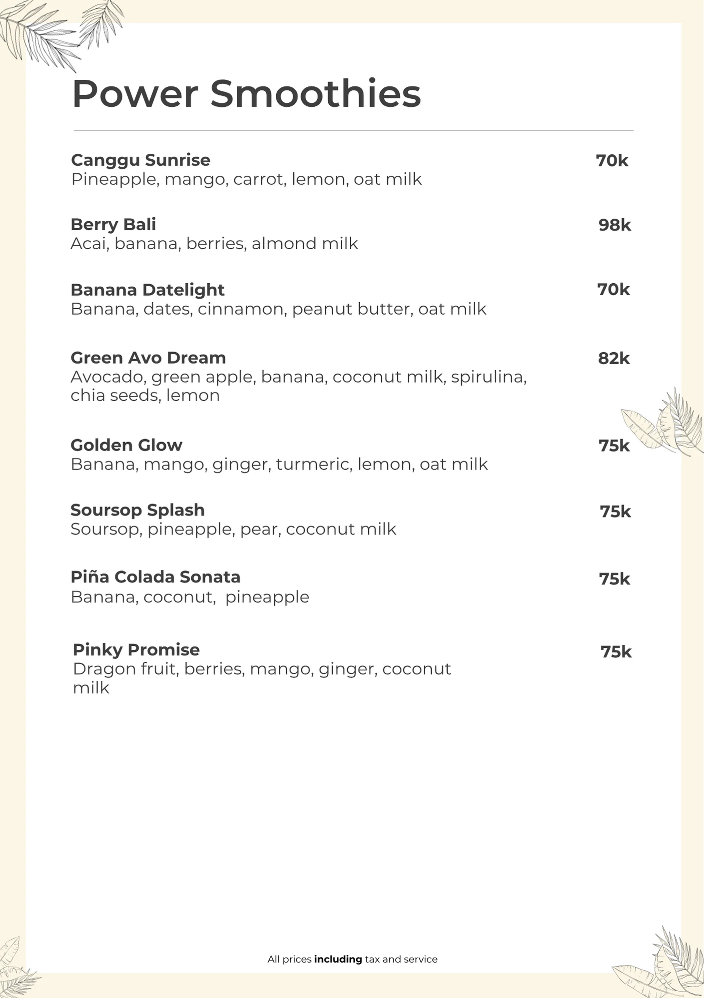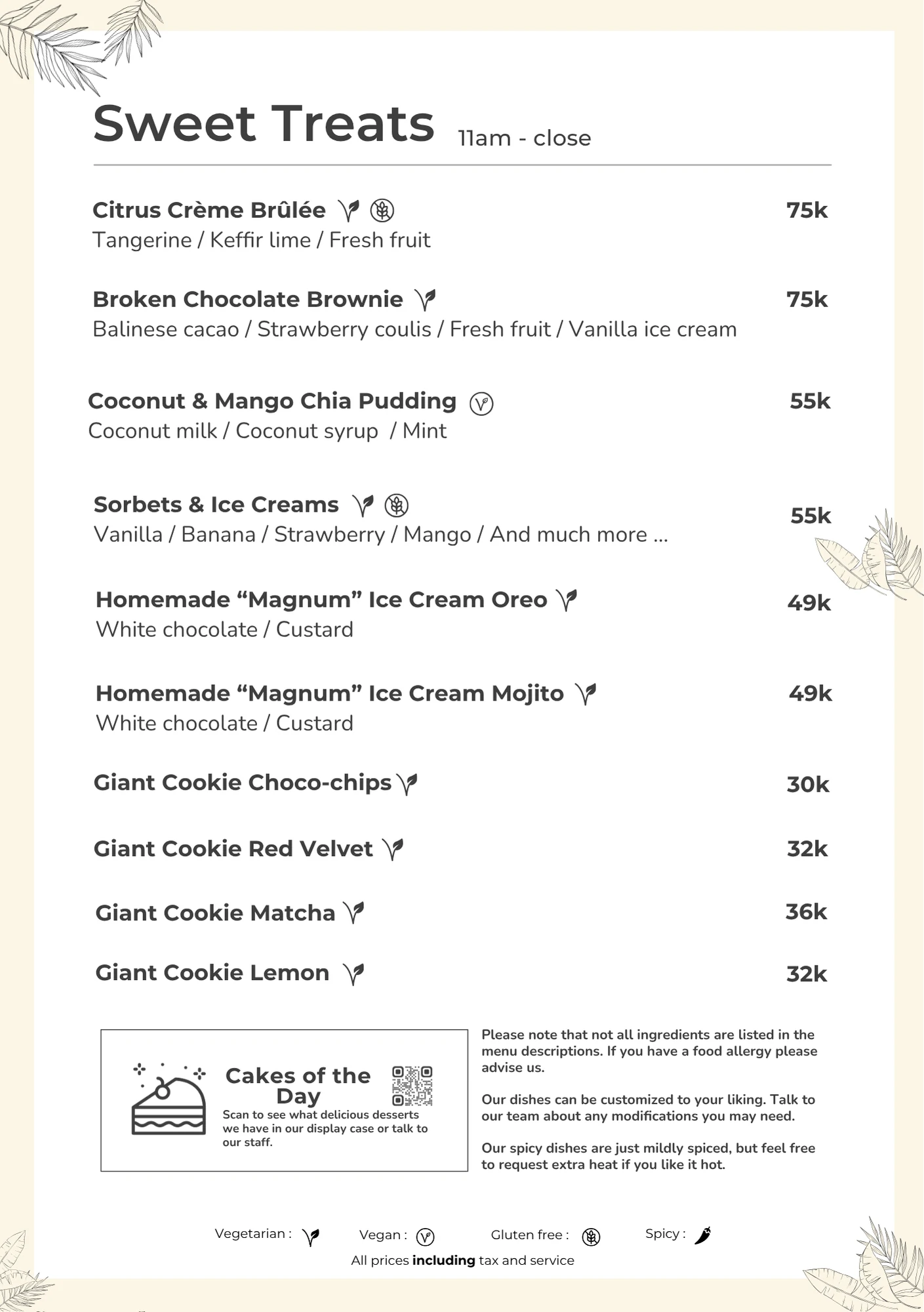 - Each guest is entitled to one main course, one juice, and one coffee or tea selection per person.