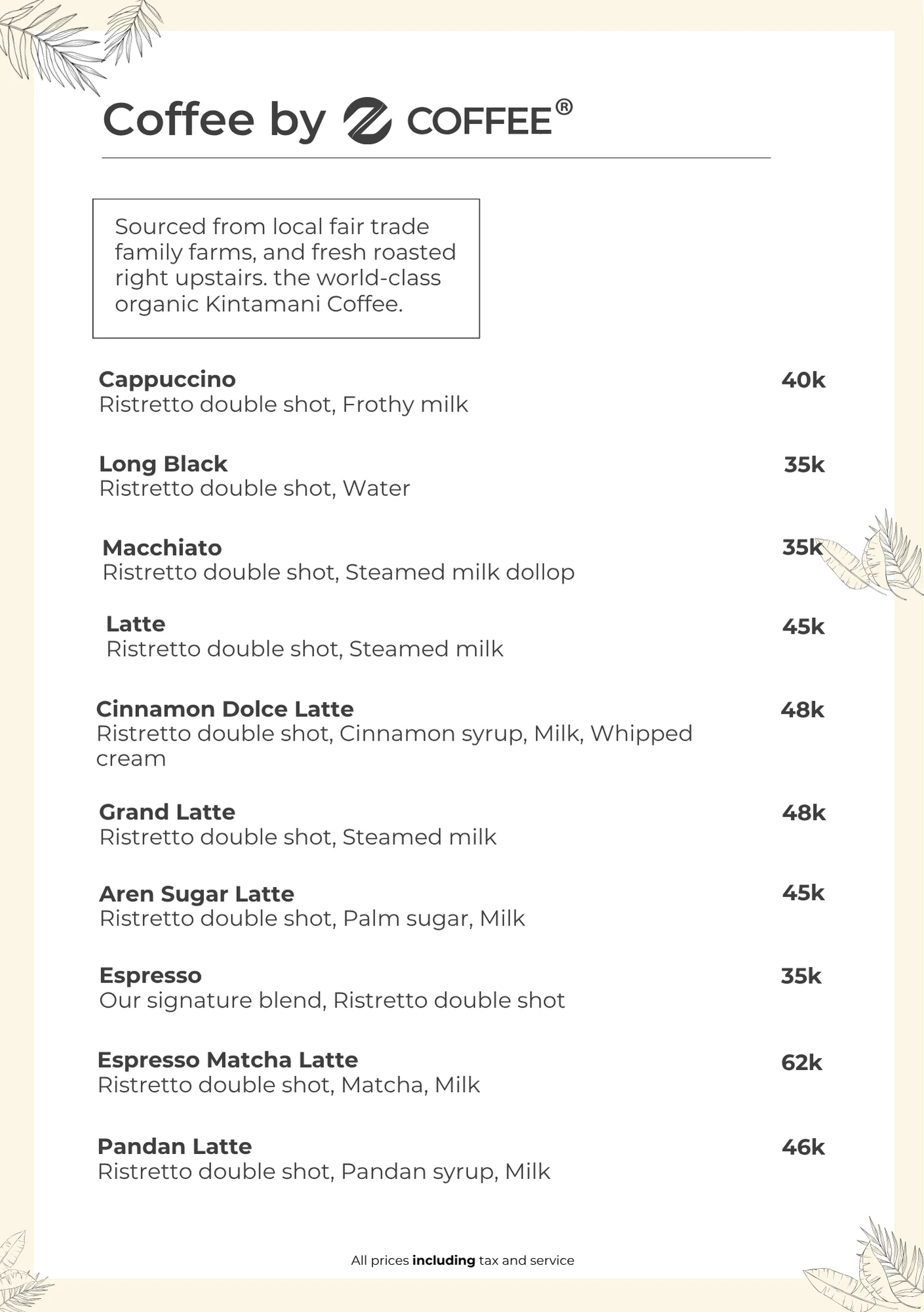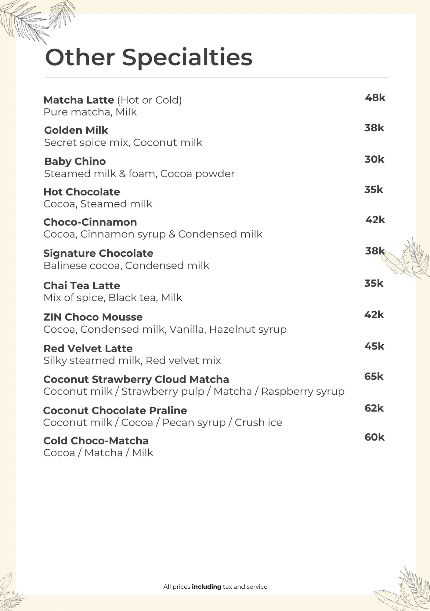 - Alternatively, guests can enjoy their drink at ZIN Cafe by showing their room key.