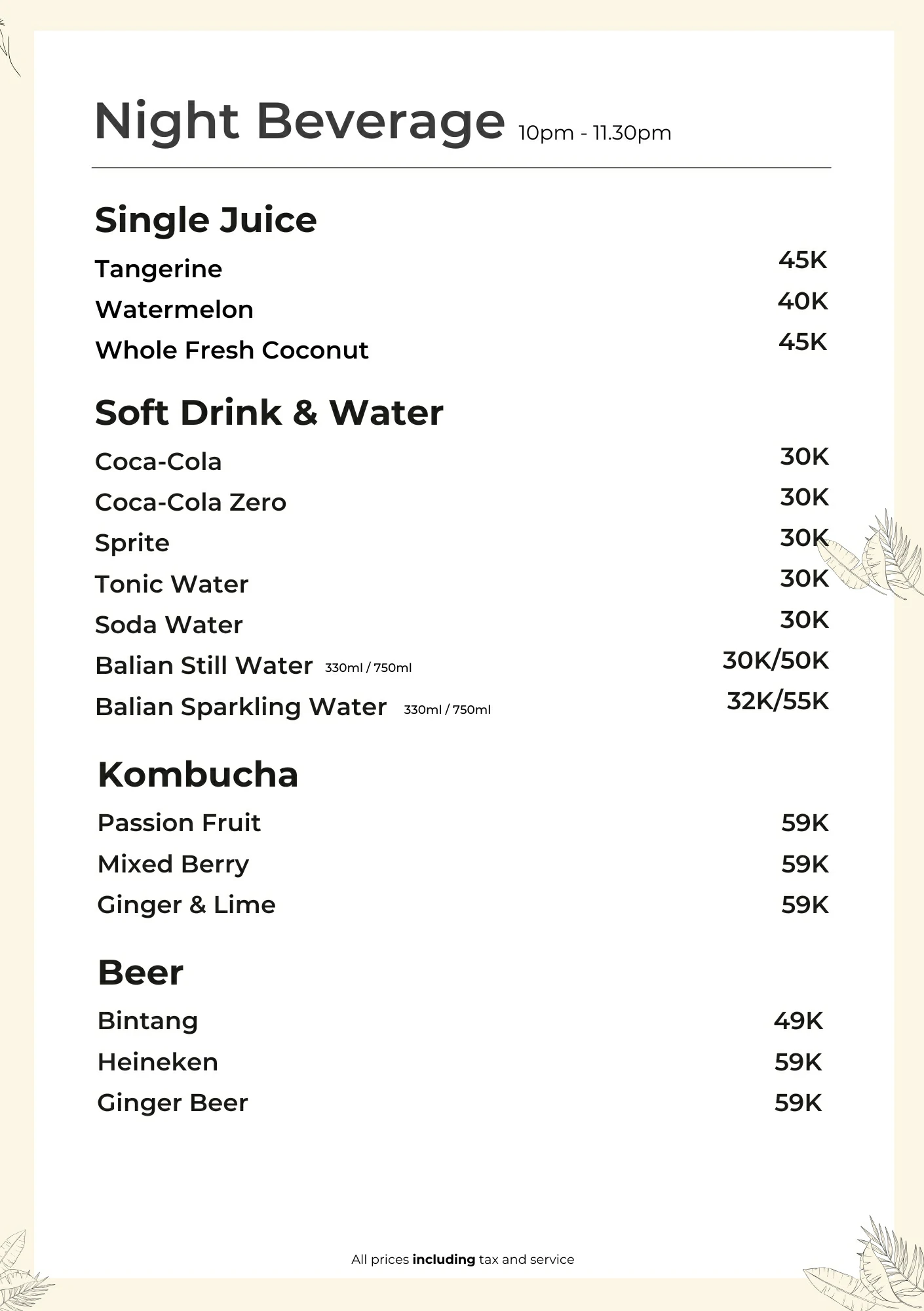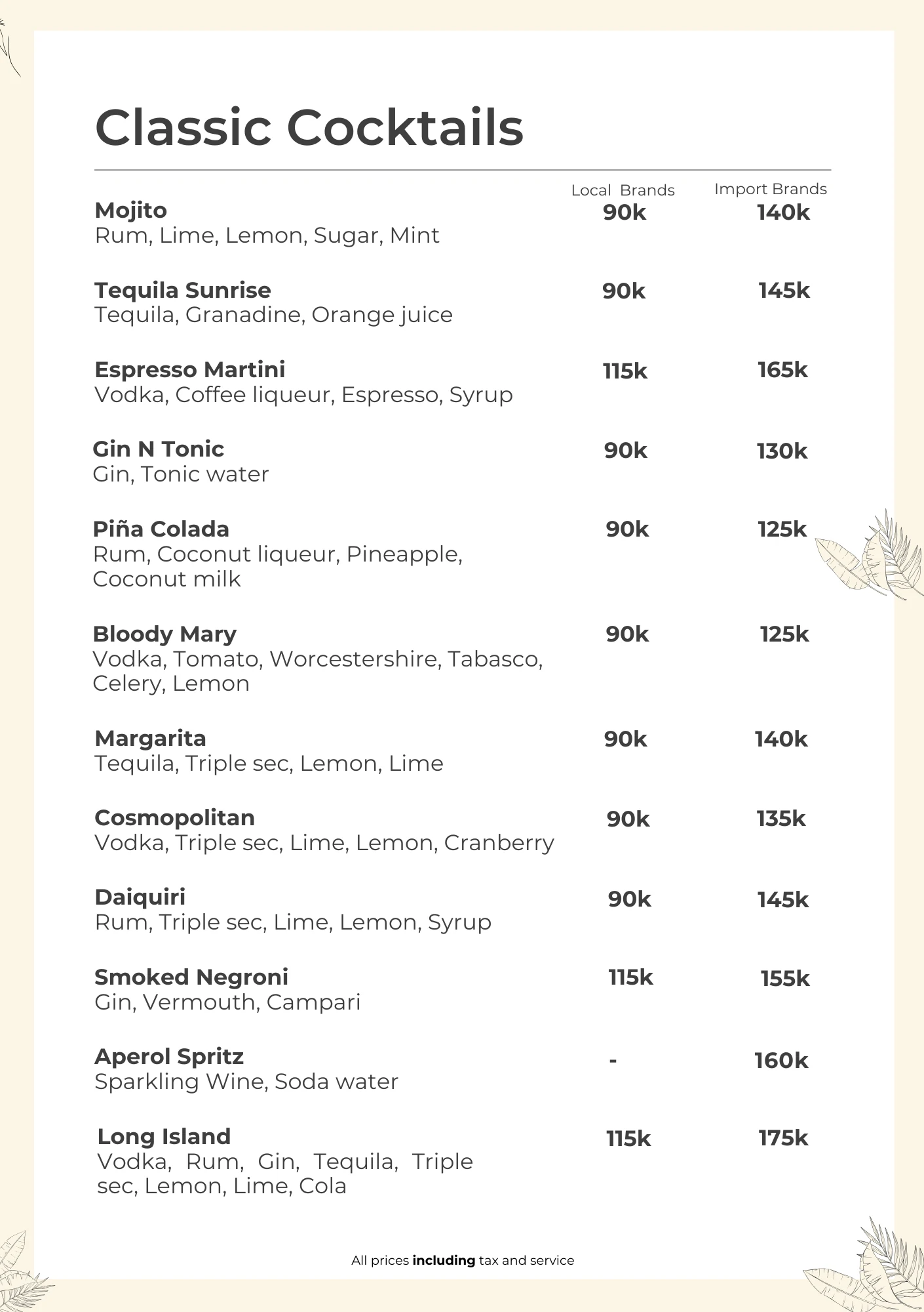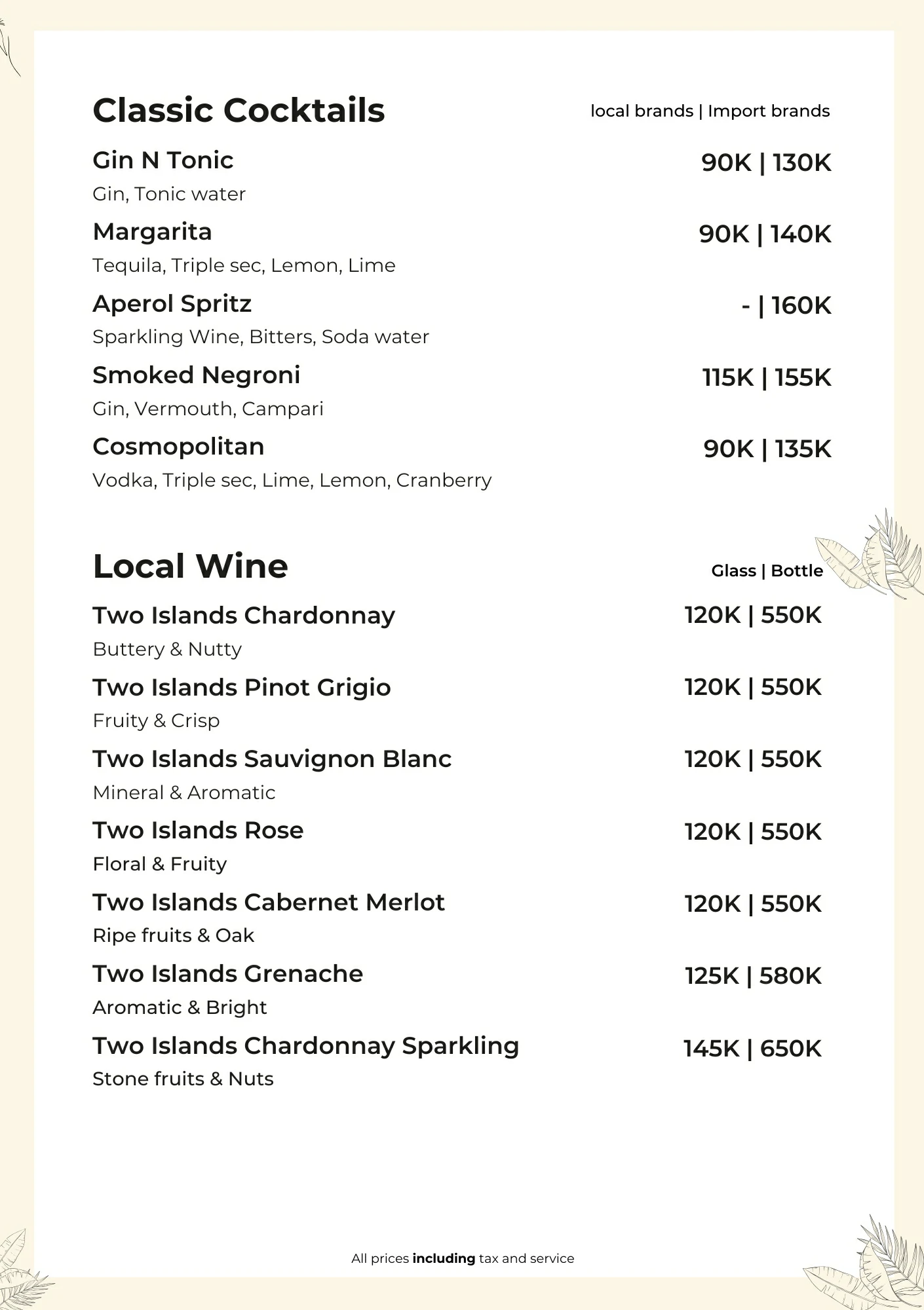 - Each guest is entitled to one glass of a local brand spirit per person.